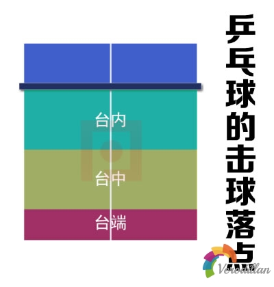 擊球落點即將球擊打到球臺的差異區域上。我們可以憑證由近到遠的擊球落點,將球臺大致分為三個區域臺內,臺中,臺端。