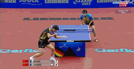 實(shí)際上你徒手的時(shí)候節(jié)奏就有問題,持拍手的動(dòng)作確實(shí)做得還不錯(cuò),感覺有點(diǎn)在模仿張繼科,假動(dòng)作也都做出來了,這邊沒問題。