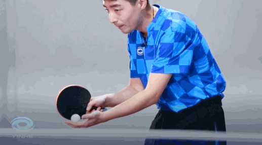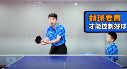 褚教練詳細講解:站在球臺正手位,手端平,球放在手掌中心保持靜止……