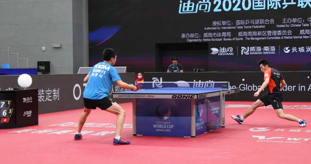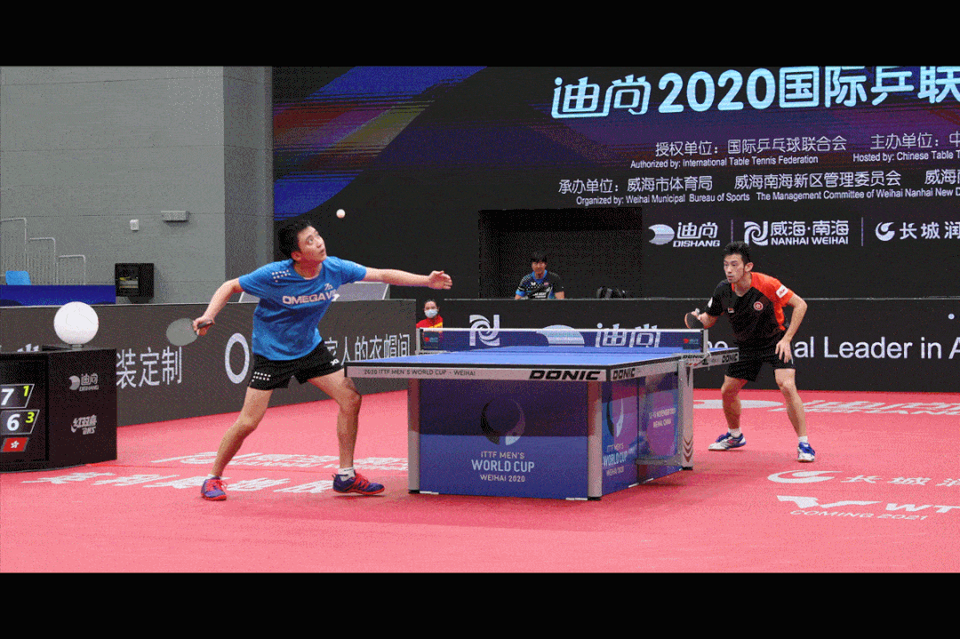 鄭榮植在擊球前迅速調(diào)整板形,改為正面撞擊球中后部的手法,給對(duì)手留下的反應(yīng)時(shí)間極短,完整的前推動(dòng)作也保證了弧線長(zhǎng)度,使球幾乎落在球臺(tái)底線和邊線相交的臺(tái)角處,落點(diǎn)刁鉆,在最大程度上限制了黃鎮(zhèn)廷的接發(fā)球空間。