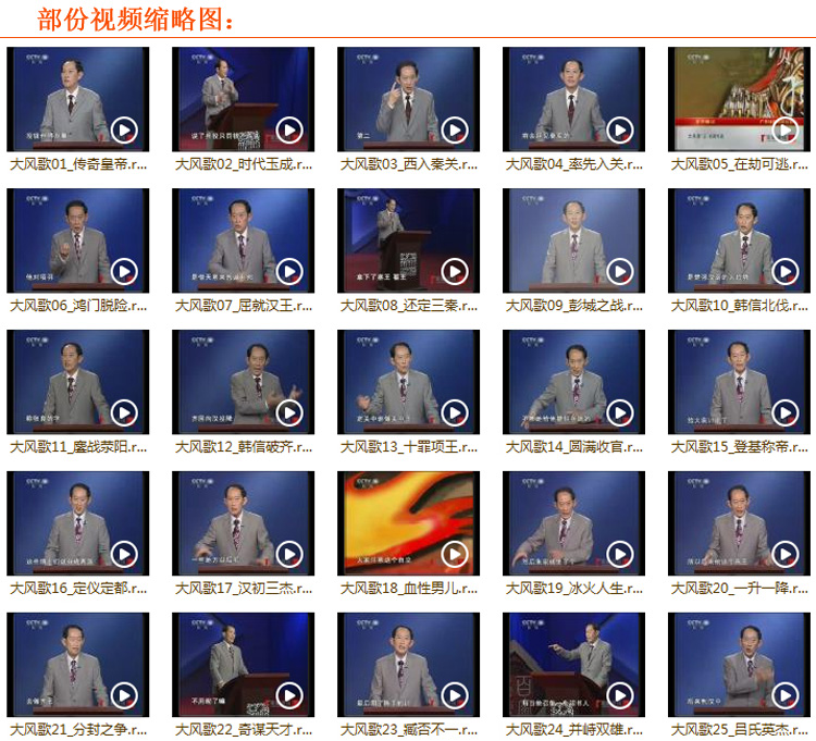 《大風歌》由王立群主持。主要講述劉邦的一生之成敗,對之進行反思和總結,得到對今人有用的啟迪。是漢朝皇帝劉邦所作的詩歌。劉邦在戰(zhàn)勝西楚霸王項羽后,成了漢朝的開國皇帝。這當然使他興奮、歡樂、躊躇滿志,但在內心深處卻隱藏著深刻的恐懼和悲哀。這首《大風歌》就生動地顯示出他矛盾的心情。