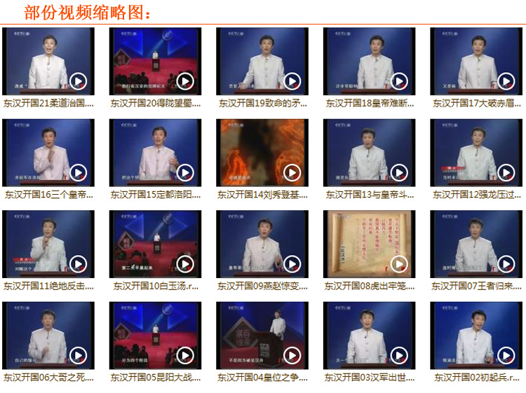 《東漢開國》是中央電視臺科學(xué)教育頻道(CCTV10)《百家講壇》欄目的一個系列節(jié)目,其從正史的角度描述了自新朝末年天下大亂、光武帝劉秀起兵到東漢永平初年期間數(shù)十年的歷史。主講人為魏新,山東社科院特邀研究員,詩人、學(xué)者。