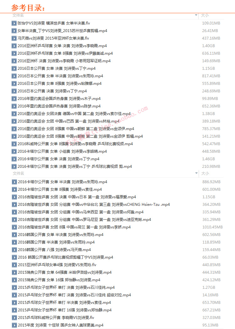 劉詩(shī)雯各類(lèi)乒乓球比賽高清視頻合集擰拉技術(shù)百度網(wǎng)盤(pán)下載