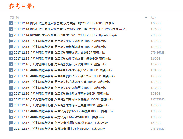 2017.12.14國際乒聯(lián)世界巡回賽總決賽乒乓球視頻全集百度網(wǎng)盤下載