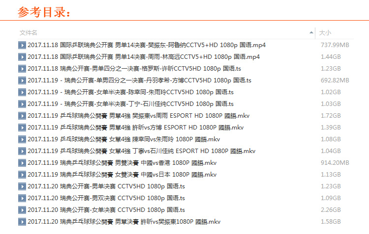 2017.11.18瑞典乒乓球公開(kāi)賽男單視頻全集百度網(wǎng)盤下載