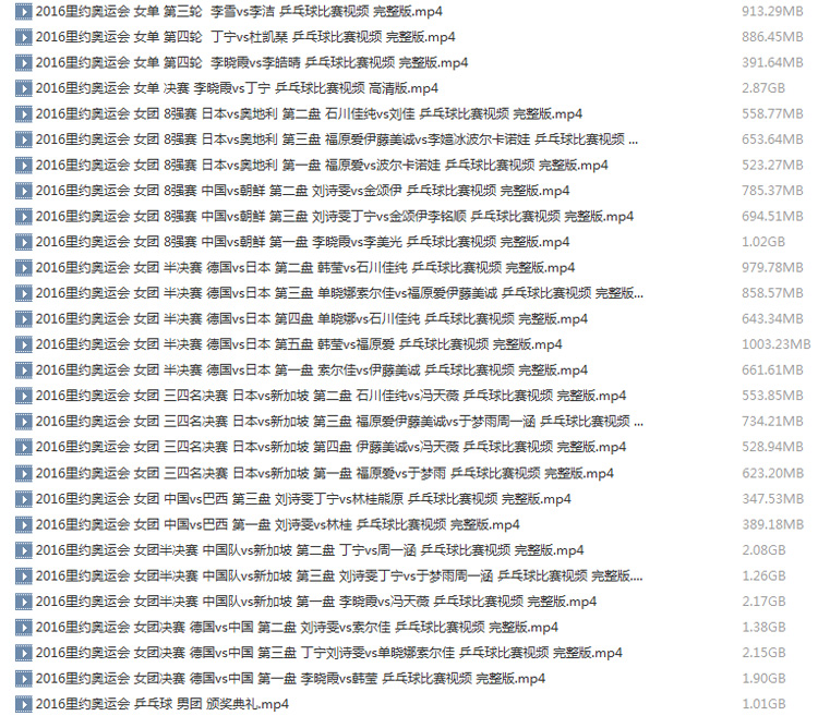 2016年里約奧運(yùn)會(huì)乒乓球比賽高清視頻合集百度網(wǎng)盤下載