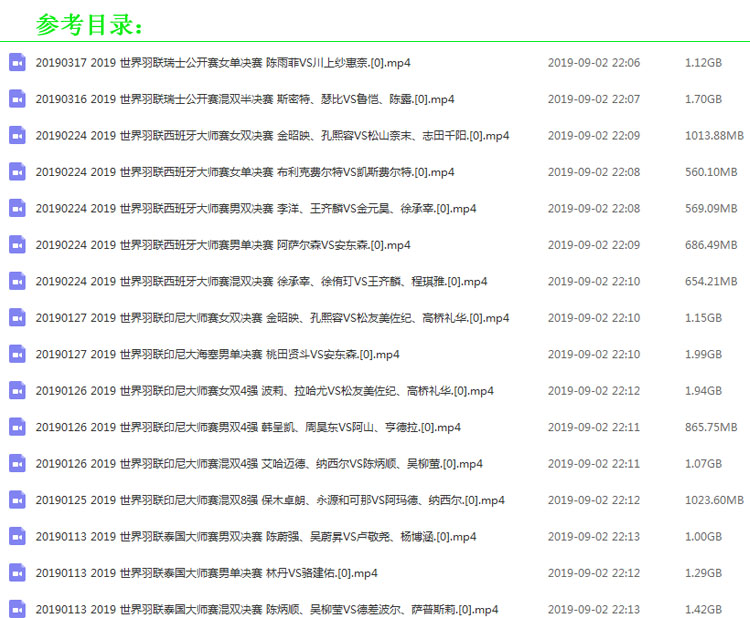 《2019世界羽聯(lián)公開賽》高清視頻合集百度網(wǎng)盤下載
