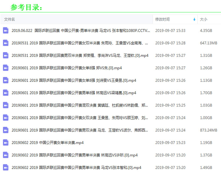 《2019國際乒聯(lián)巡回賽中國公開賽》高清視頻合集