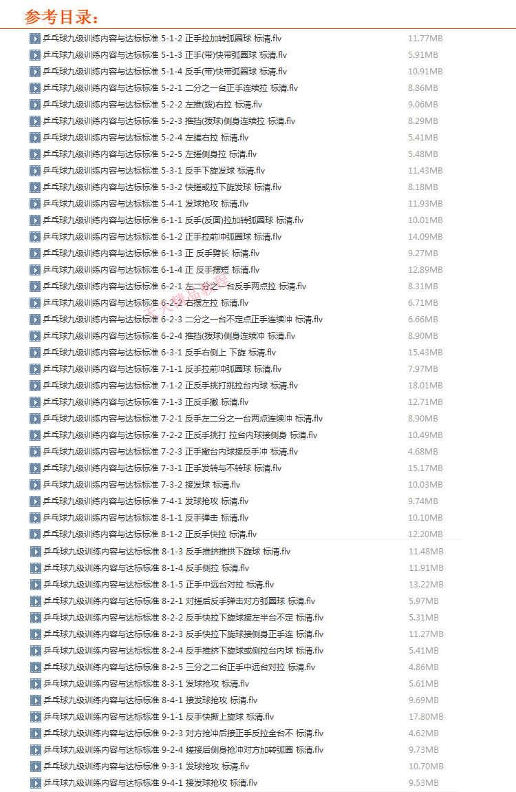 乒乓球《九級訓(xùn)練法與達標標準》視頻合集百度網(wǎng)盤下載