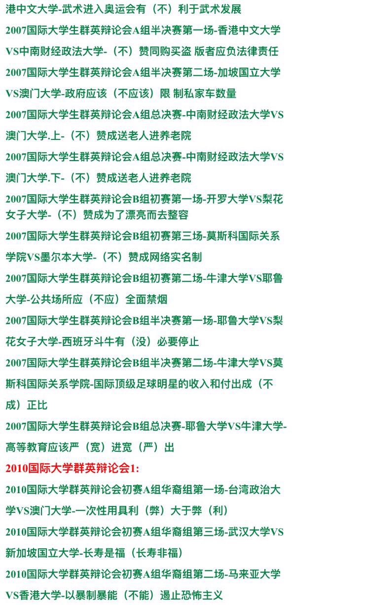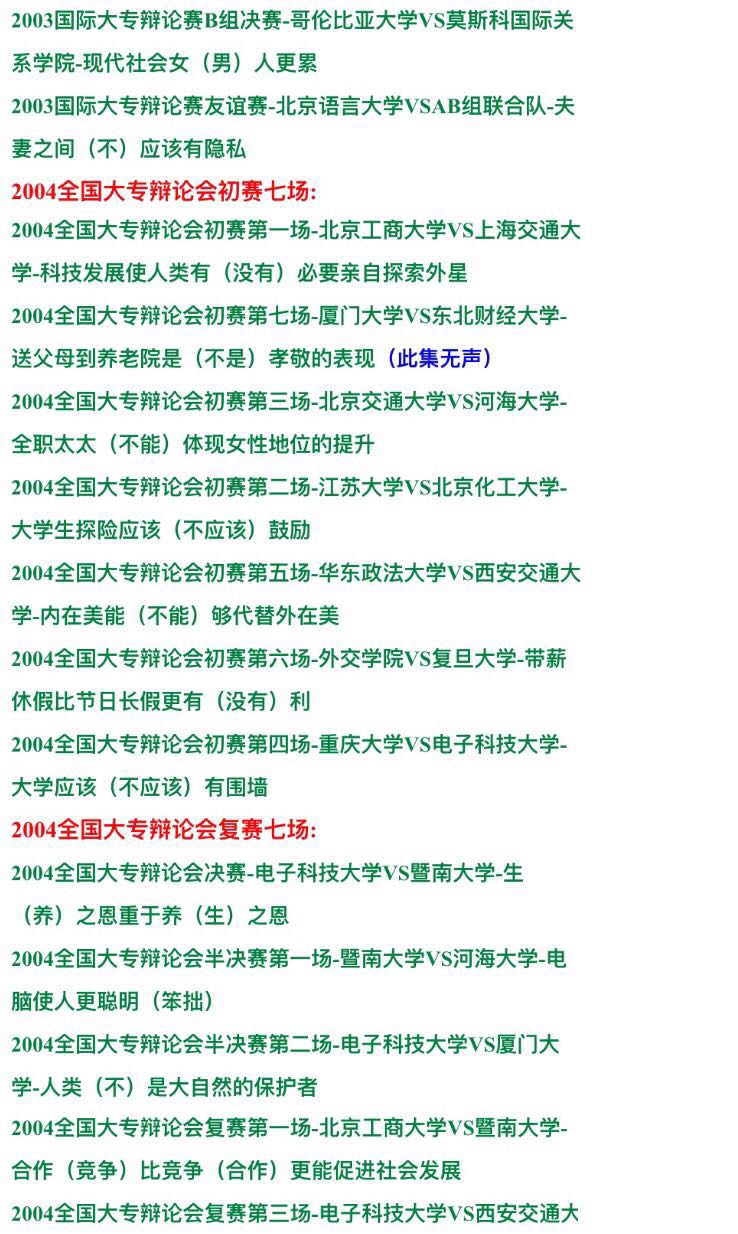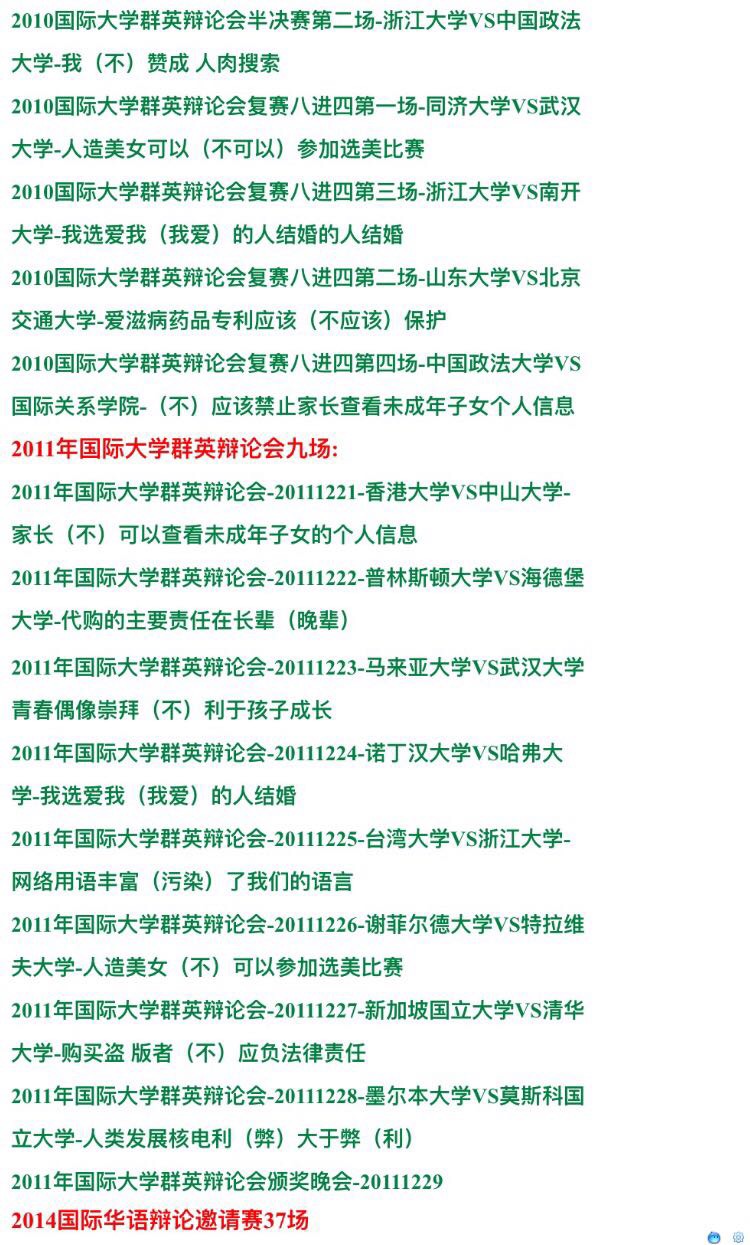 國際大專辯論賽辯論會 大學(xué)群英1993-2014年視頻錄像全集