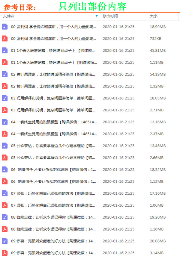 30節(jié)精選表達(dá)干貨課,分為基礎(chǔ)表達(dá)、技巧表達(dá)、高級表達(dá)、魅力表達(dá)、場景表達(dá)5大板塊。從0開始,全面系統(tǒng)的培養(yǎng)表達(dá)技巧需要該資源請加下圖微信!該資源工本費(fèi):12元