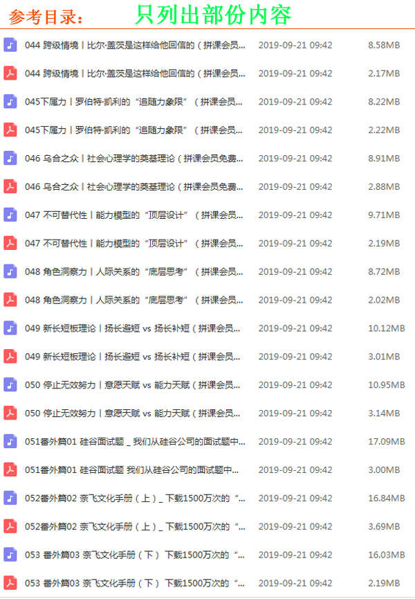 60w人都在聽的精品課系列, 50個包含心理學(xué)、行為學(xué)、管理學(xué)上可落地的知識點,每個知識點對應(yīng)2種實戰(zhàn)用法,聽完直接用。創(chuàng)業(yè)者、管理者、或是普通員工,都能從這門課找到答案。需要該資源請加微信聯(lián)系!