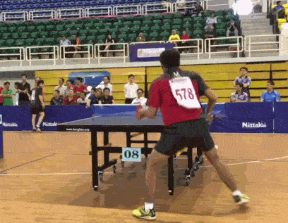 防弧圈的時(shí)候重心要下壓,尤其是對(duì)付高吊弧圈,重心如果下不來(lái),那完全是在靠胳膊控制來(lái)球了,很可能壓不住高吊的旋轉(zhuǎn),從而防出界。