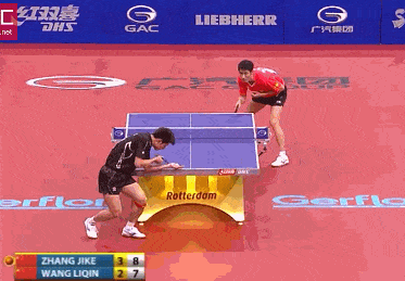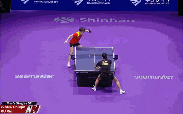 五是有一個非常有意思的細節(jié),改橫之后,腳下步法銜接和取位跟打直板時候很不一樣,不如直板順暢,所以很多時候需要借助上半身來調(diào)整,說白了就是動作變形。