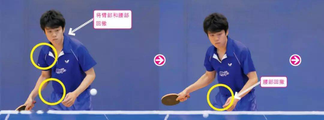 擊球之前要向后回撤球拍,回撤的動作不應(yīng)該是使用小臂。如果是右手擊球的話,應(yīng)該將右側(cè)腰部回撤,并且旋轉(zhuǎn)身體。隨后根據(jù)擊球的時機轉(zhuǎn)動腰部,帶動小臂擊球。