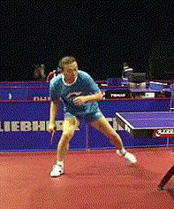 要判斷拉正手弧圈球的最佳擊球點(diǎn),當(dāng)然需要良好的步法,主要是向右前方的跨步、撲正手位大角的交叉步、向后的交叉步(側(cè)身)、以及用于調(diào)整身體重心的小墊步。判斷最佳的擊球點(diǎn)位置,好比是足球和籃球中的跑位,我稱之為“跑點(diǎn)”。