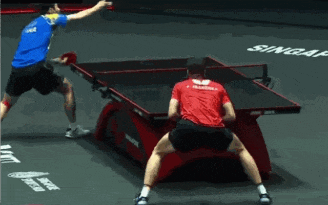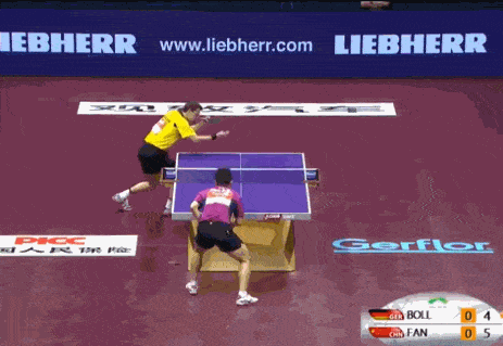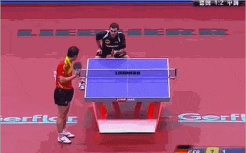 說明要想有一手好發(fā)球,發(fā)球前的動(dòng)作就不能太過明顯,比如要發(fā)奔球,發(fā)球前的板形就不能立得太明顯,向后引拍就不能太明顯,發(fā)短球也是一樣。發(fā)球的前搖假動(dòng)作,還是很重要的。