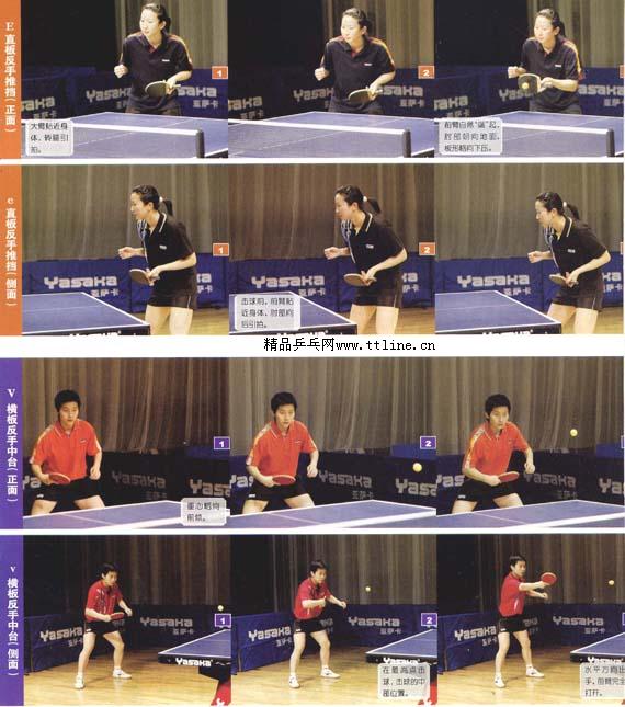 橫板反手在中臺可以運用很多技術(shù),在這里主要運用了中臺反手彈擊的技術(shù)。這項技術(shù)往往用于相持中的過渡球。