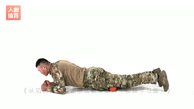 俯臥姿,雙肘與雙腳腳尖撐地,將筋膜球置于大腿左腿前側。雙臂推地,帶動身體移動,使筋膜球在膝關節(jié)至髖關節(jié)的范圍內來回滾動,尋找明顯酸痛點,并在酸痛點著力滾動。兩側交替進行。