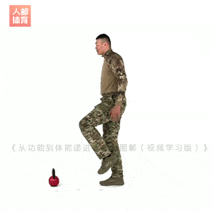 單腳站立,支撐腿微屈或伸直,軀干挺直,雙臂自然置于身體兩側。將壺鈴(或其他固定物)放在身體正前方。向前俯身,右腿上抬以保持身體平衡,同時右臂伸直、右手去觸摸壺鈴。兩側交替進行。