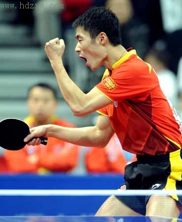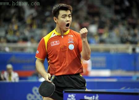 在中國男隊(duì)連贏兩場后,韓國隊(duì)大勢已去。以削球聞名于世的朱世赫,在第 三場比賽中完全淪為了王勵勤的陪練。王勵勤以閃電般的速度為中國男乒掃清了 最后一個(gè)對手。