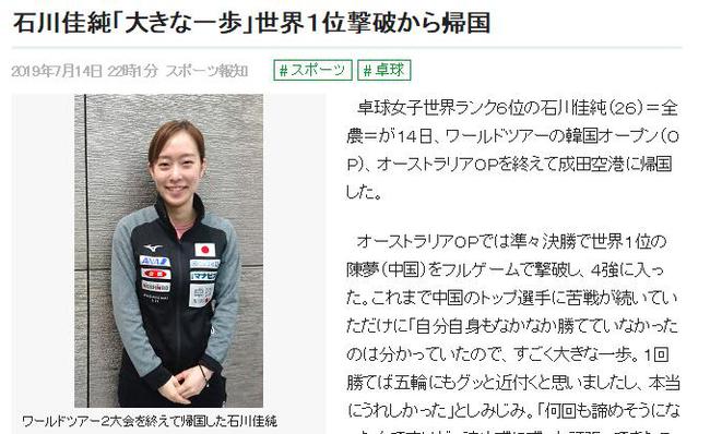 昨天,世界排名第六的日本名將石川佳純(26歲),結(jié)束背靠背的韓國(guó)、澳大利亞兩站公開(kāi)賽后返回日本。在成田機(jī)場(chǎng)接受采訪時(shí),她開(kāi)心表示在新主管教練邱建新的幫助下邁出了“一大步”。