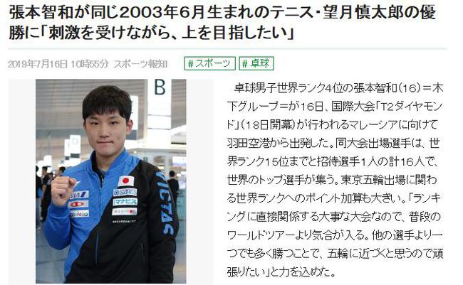 “與乒乓球相比,年輕的網(wǎng)球選手很難出場,但他留下了很棒的結(jié)果。因為是同輩,所以很尊敬。漸漸地感覺自己到不再是最年少,同世代的選手也出來了。我想一邊接受刺激,一邊向上攀登。”張本智和說道。