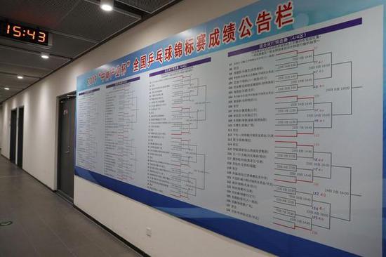 如此多的參賽隊(duì)伍和選手,也讓乒乓球全國(guó)錦標(biāo)賽成為超越國(guó)際乒聯(lián)巡回賽參賽規(guī)模的“巨型”賽事。本次舉辦賽事的天津武清體育中心,也是2017年全運(yùn)回天津賽區(qū)乒乓球項(xiàng)目比賽的主場(chǎng)地。組委會(huì)在墻上設(shè)置的成績(jī)公告欄甚至超過(guò)了5米,可謂是“一眼望不到頭”!