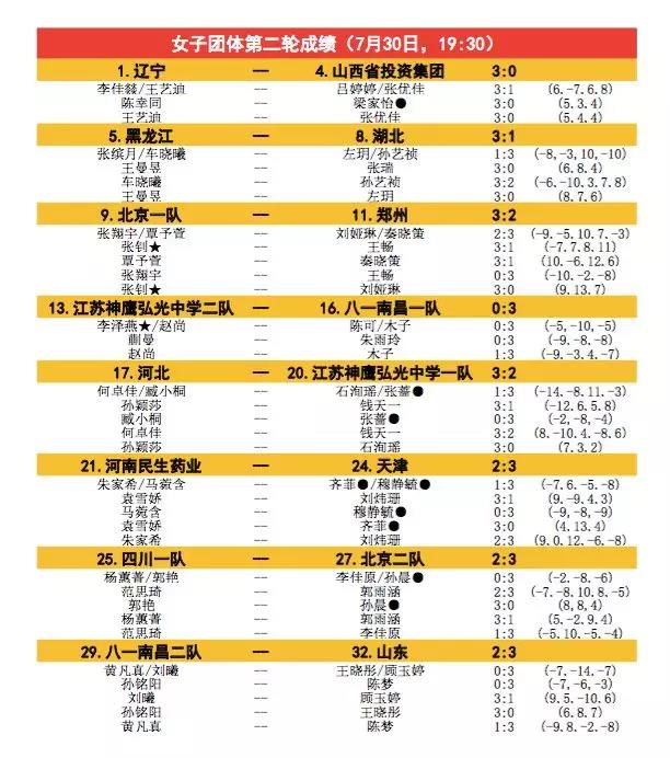 7月30日女團(tuán)戰(zhàn)績(jī):