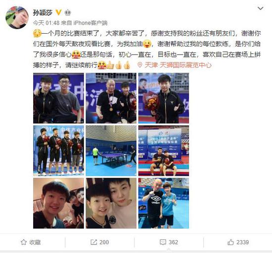 在昨天女團決賽結(jié)束后,孫穎莎也發(fā)了一條微博,微博中說道:“一個月的比賽結(jié)束了,大家都辛苦了,感謝支持我的粉絲還有朋友們,謝謝你們在國外每天熬夜觀看比賽,為我加油,謝謝幫助過我的每位教練,是你們給了我很多信心。還是那句話,初心一直在,目標也一直在,喜歡自己在賽場上拼搏的樣子,請繼續(xù)前行。”