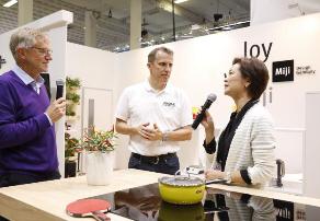 (德國米技董事長季殘月女士與德國男子乒乓球隊主教練羅帥接受IFA展官方電視媒體采訪)