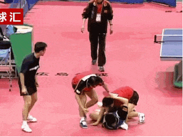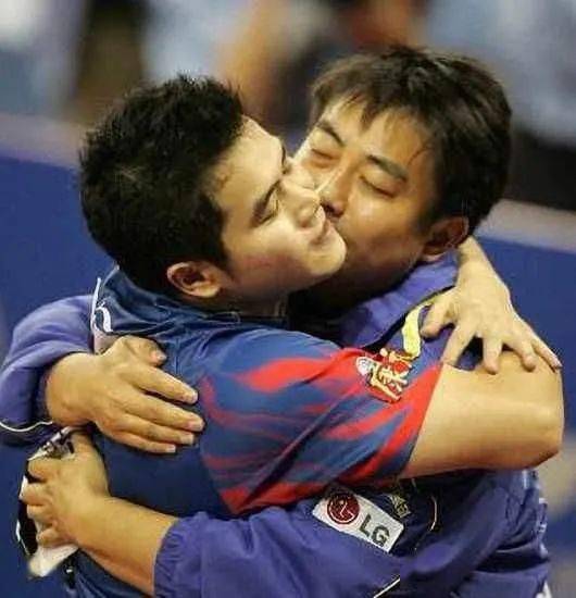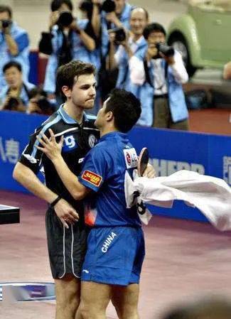 小白球落地瞬間,劉國梁第一個沖過擋板——少帥壓力大啊,上任以來連丟世乒賽、奧運會男單金牌,任何一場都不想輸了。