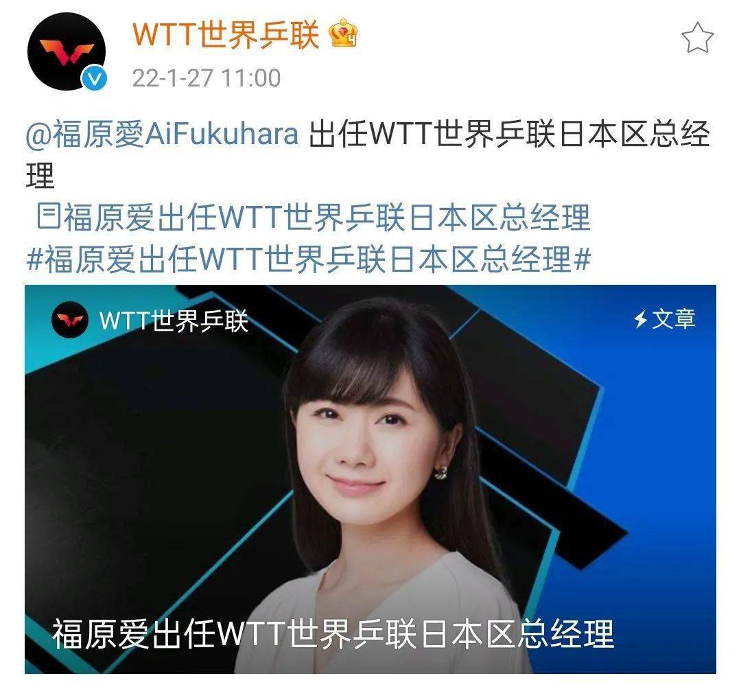 這個決定是通過國際乒聯(lián)開會決定的,國乒負責(zé)人劉國梁和國際乒聯(lián)首席執(zhí)行官史蒂夫.丹頓都認為福原愛是最合適的人選,她有這個能力,人氣也很高,主要負責(zé)的工作是為WTT創(chuàng)造賽事主板幾班,推動贊助和投資,支持乒乓球運動發(fā)展,同時跟日本乒協(xié)進行溝通和協(xié)商。