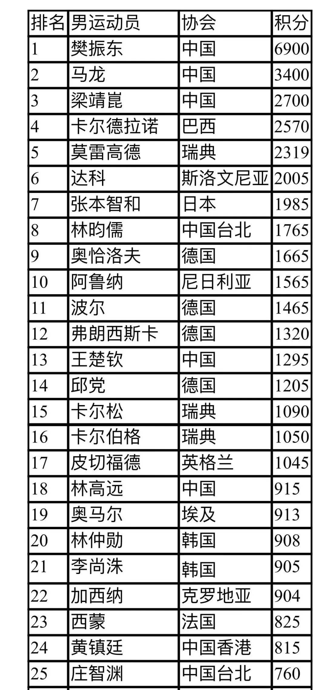 男子方面,2020年基礎(chǔ)積分雖被清除,但樊振東仍憑借在東京奧運會、休斯敦世乒賽、WTT世界杯決賽和WTT新加坡大滿貫中取得的三冠一亞,以較大優(yōu)勢穩(wěn)坐世界第一的位置。馬龍位居第二。梁靖崑超越巴西一哥雨果,位列第三。