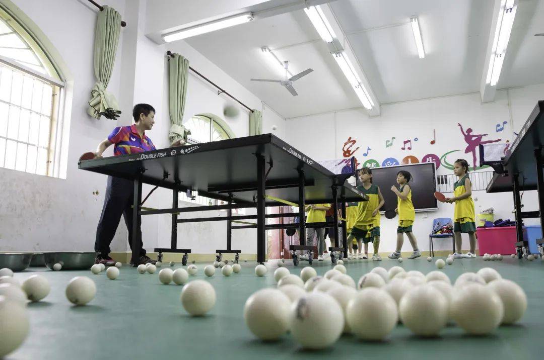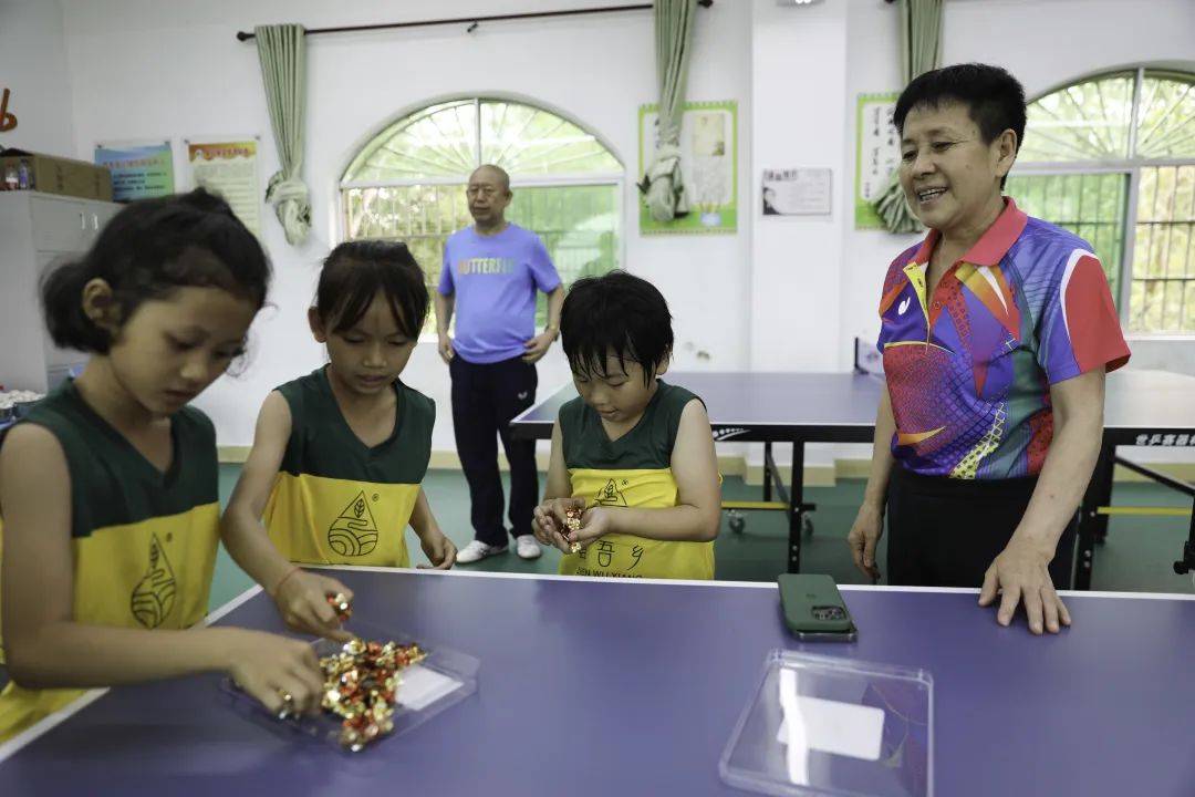 “好,手臂擺動要自然,腳步跟上。”球臺前,關艷細致地觀察著每個隊員的動作,并及時引導。兩個小時的訓練中,孩子們時不時去喝水,但關艷和李華先卻滴水未進,因為他們怕上廁所影響孩子的訓練節(jié)奏。