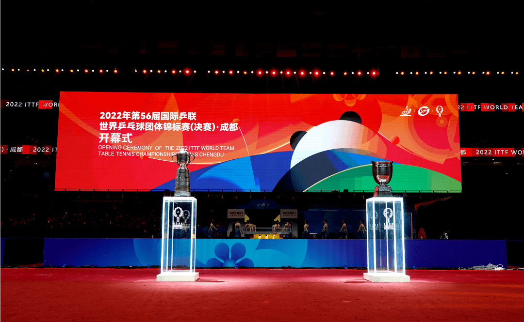本屆世乒賽開幕式遵循簡約、安全、精彩、專業(yè)的原則,圍繞國際標準、中國風格、巴蜀特色進行創(chuàng)意設計,展示新時代中國特色及西部發(fā)展成就和良好形象。既保有開幕式的儀式感和參與度,又突出濃郁的舉辦城市文化特質。在完整保留比賽場地內設施設備和布局的基礎上,開幕式將比賽場地和開幕式場地合二為一。用寓意第56屆世乒賽的560顆發(fā)光LED燈球點亮開幕式的天幕,并配合現(xiàn)場流程、儀式和表演,通過色彩和陣列的變化,演繹出地球、世乒賽logo 世乒賽獎杯、熊貓、2022成都等圖案和字樣讓乒乓球成為開幕式上最奪目的主角。