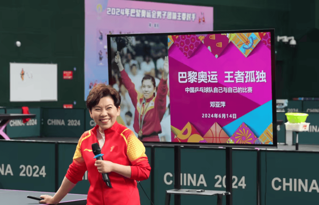 在訓練結束后,利用晚上時間,鄧亞萍分別向女隊和男隊做了不同側重點的主題交流。在《巴黎奧運·王者孤獨——中國乒乓球隊自己與自己的比賽》為主題的分享中,鄧亞萍從自己切身體會出發(fā),將備戰(zhàn)環(huán)節(jié)逐一拆解。從備戰(zhàn)準備到比賽過程中的各個環(huán)節(jié),多維度向大家傳授經(jīng)驗、法寶。鄧亞萍告訴大家,不光要“認真研究對手”,更要勇于“戰(zhàn)勝自己。”