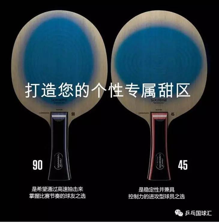 Carbonado型號這么多,咱們該玩哪一款呢?國球匯君首先向大家推薦手感最軟的Carbonado 45/90。為啥呢?前頭說過,TexTreme是一款強度較高的碳纖維,倘若功底不夠強悍,很難完美駕馭。