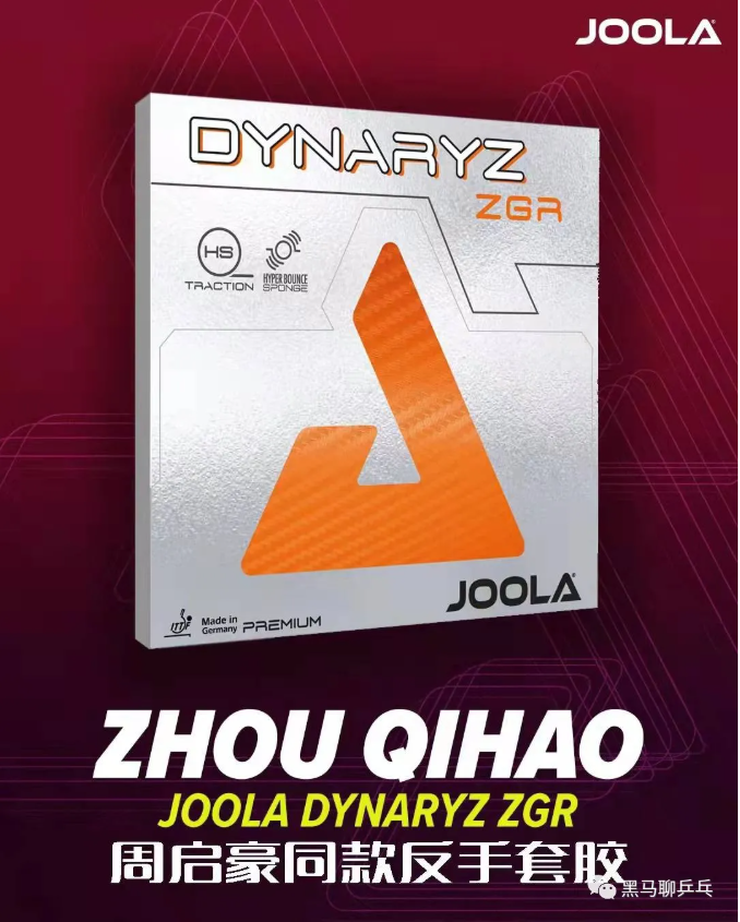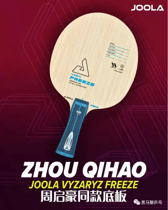 已知,周啟豪最新的乒乓球板配置:底板為冰封,反手膠皮為皇朝ZGR。