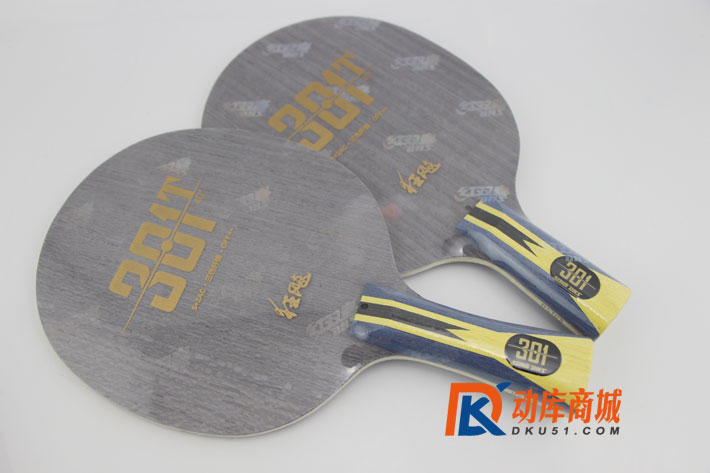 因?yàn)榧t雙喜301T底板的手柄設(shè)計(jì),中間黑色的那條東西看著太像蜥蜴的舌頭了,不好看。勁極3T的手柄配色明顯更美觀。