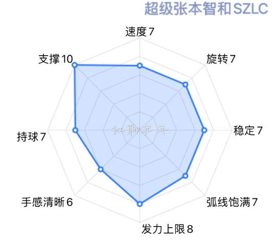 張本智和SZLC是40+塑料球時代,正手弧圈結(jié)合快攻反手推擋打法的優(yōu)秀解決方案,它的弧圈快攻偏重比例為弧6快4(弧圈快攻此消彼長總和為10),把它推薦給上述打法的業(yè)余球手。