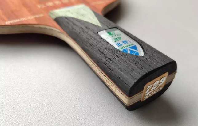 首先看顏值。在本人對(duì)729乒乓球器材有限的了解中,名貴系列底板是729第一組采取手柄雕刻編碼的系列產(chǎn)品,并且采用了全新的金色金屬尾標(biāo),單從顏值來講較以前就已經(jīng)有了很大進(jìn)步。