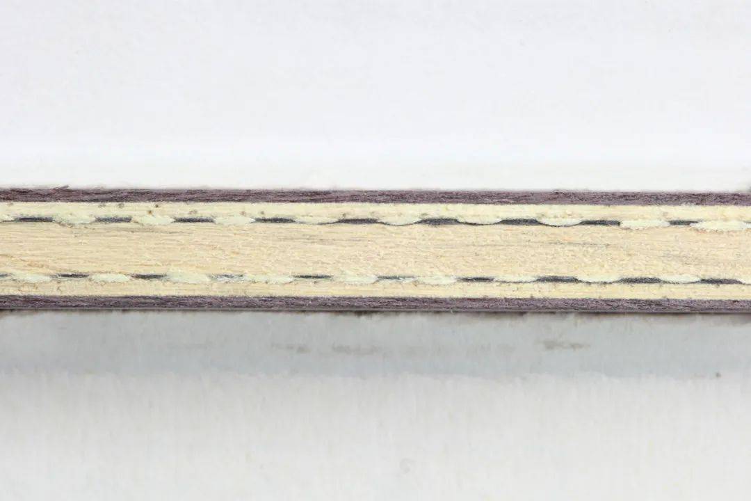 相比狂飚龍5,狂飚龍5X要明顯更硬、更彈,更符合40+的擊球效果。后綴“X”追求的并非推翻重構(gòu),而是將加減并行,在原有基礎(chǔ)上進(jìn)行微調(diào),從而讓球板的性能改變。為了應(yīng)對(duì)40+,狂飚龍5X加厚了原版狂飚龍5的大芯,減薄了力材,并且將原先5.8mm左右的厚度提升至了6.0mm左右,由于芯材增厚明顯,因此在視覺(jué)呈現(xiàn)上會(huì)感到狂飚龍5X比狂飚龍5厚上不少,不過(guò)依舊算得上是不錯(cuò)的纖維板身材。另外還有一個(gè)有趣的細(xì)節(jié):由于狂飚龍5X采用的是與狂飚龍5一樣的板形與拼花,手柄厚度也一致,但因?yàn)榘迳砑雍竦木壒剩耢?X的握感要明顯比狂飚龍5來(lái)的更為飽滿(mǎn),因此在相持?jǐn)[速上的穩(wěn)定性會(huì)更出眾。