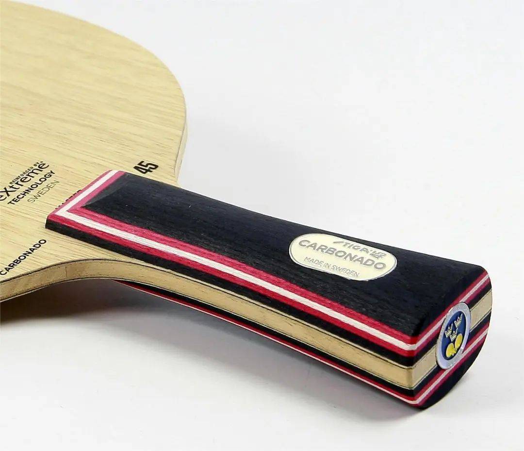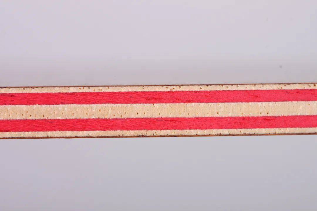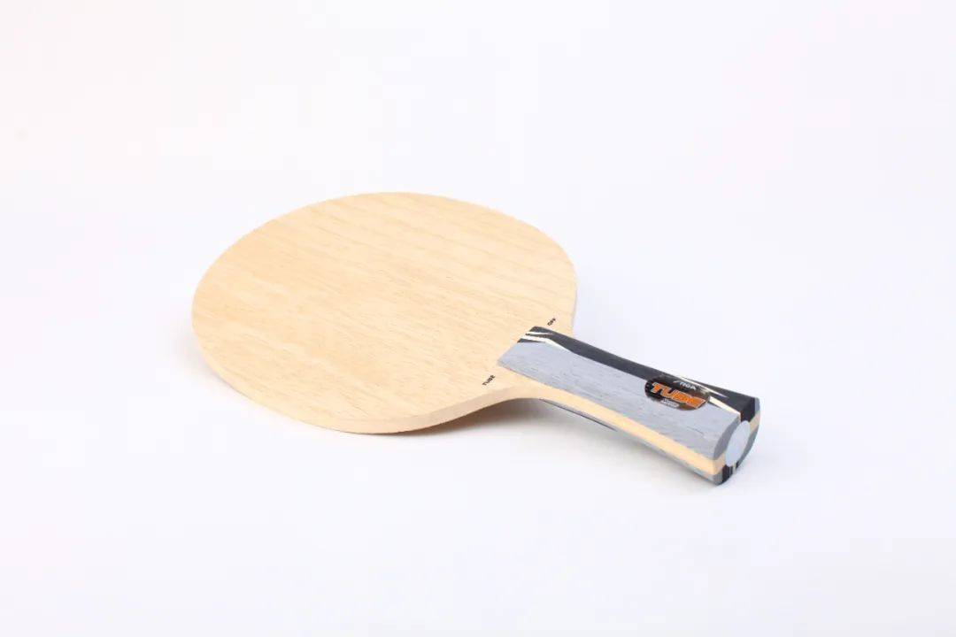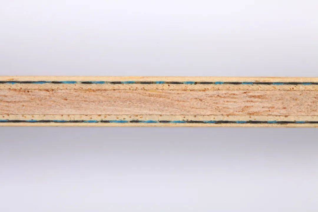 在傳統(tǒng)五夾板中,作為表層與里層的夾層,被統(tǒng)稱為球板的“力材”,由于表層和里層大多是以木質(zhì)纖維縱向安置,而夾層則多為木質(zhì)纖維橫向安置,由于橫置的木材纖維較短(最寬部位即為球板的最高寬度值),短纖維的振動幅度不大,且反饋更為密集,因此力材在球板的剛性方面起到著至關(guān)重要的作用。通常,力材較厚的球板會擁有十分強大的剛性,這也是許多早期硬五夾的風(fēng)格,例如蝴蝶馬祖諾夫、斯帝卡Tube系列,紅雙喜狂飚H-WL,都是加厚力材的代表作,同樣,也都是硬五夾的代表作。