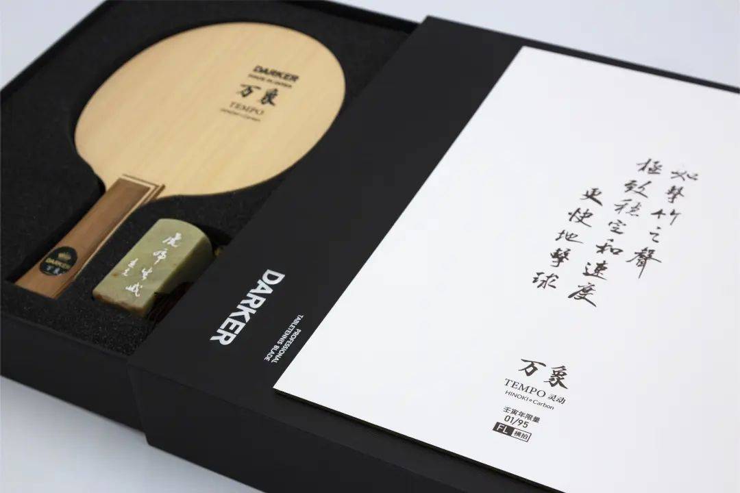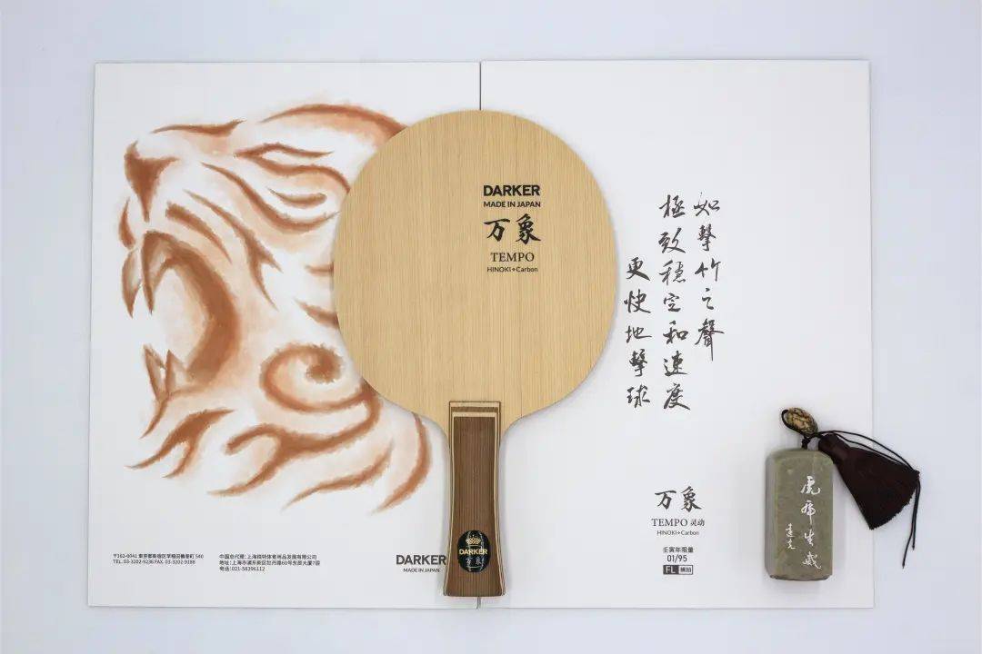 本次萬象TEMPO靈動(dòng)系列底板將以“虎虎生威”禮盒的形式限量發(fā)售,共計(jì)發(fā)售192套,其中橫拍定價(jià)4999元發(fā)售95套,直拍定價(jià)4999元發(fā)售97套。“虎虎生威”主題不僅代表著萬象靈動(dòng)系列底板的誕生年份——壬寅虎年,更加寄托著達(dá)克品牌對廣大乒乓球愛好者們的一種美好期許。