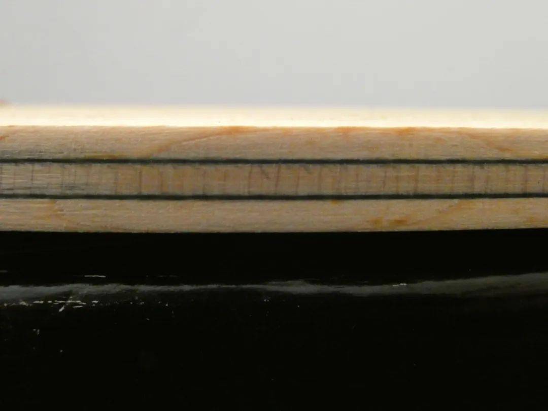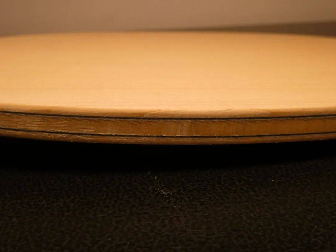 基本上Nittaku Carbon Racket系列的所有型號都是檜木面材的,因?yàn)楫?dāng)年是以降低球板厚度又能做出單檜球板的感覺為大前題而開發(fā)的。通過調(diào)校大芯與面材的厚度,從而制造出了不同彈性的球板。
