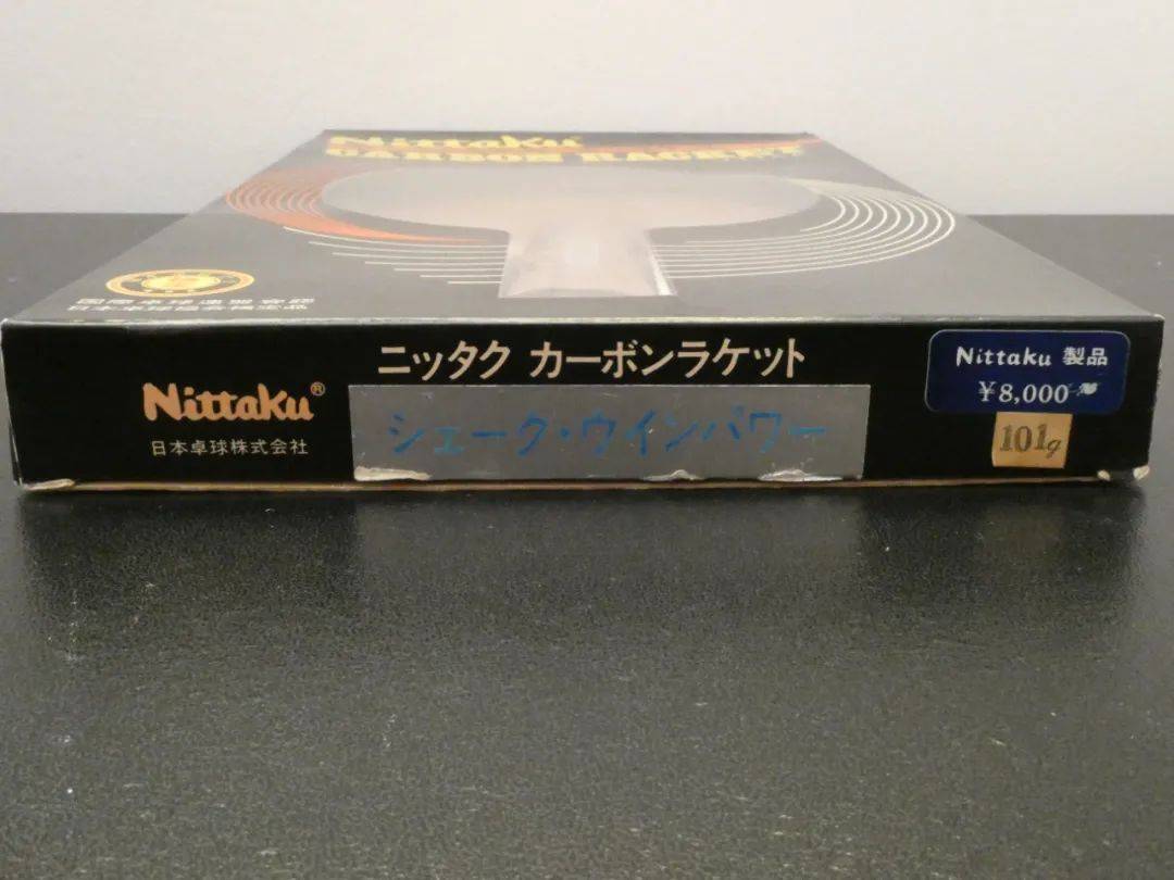 先為大家介紹的是N-1037 Shake Power,它是我第一支Nittaku Carbon Racket收藏。包裝是用超重量級的硬卡紙制造,而且是Nittaku很少用的天地盒設(shè)計。包裝上的信息非常之多,在盒底記載了Nittaku當(dāng)時對碳纖這種新材料的說明,當(dāng)年是把單檜球板的彈性和碳纖球板作了比較。↓↓↓