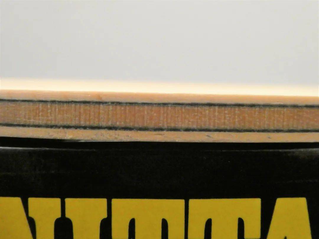 Shake Power是一支3+2結(jié)構(gòu)的球板,板身比較薄,板面也大。在夾層對比之下,碳纖層顯得非常之厚。而且,火爆至今的檜木面材3+2結(jié)構(gòu)碳板,始祖竟也是源于Nittaku。↓↓↓