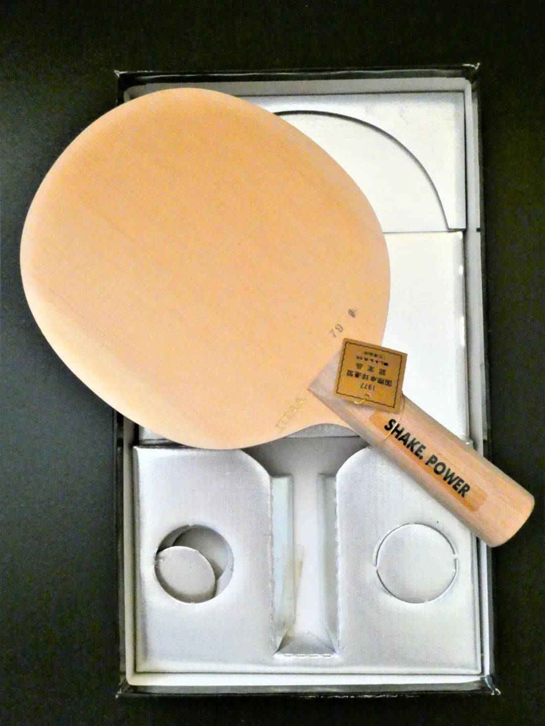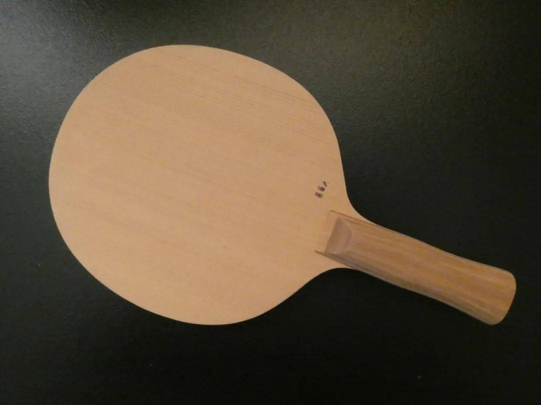 接下來的是Nittaku Carbon Racket的第二代產(chǎn)品Shake Win Power。完全找不到它的任何數(shù)據(jù),可能是Shake Hi Power的后繼型號。板形和第一代Carbon Racket有些不同,更接近現(xiàn)代Nittaku的板形。重量是當(dāng)年碳纖球板的一大問題,初代BUTTERFLY生產(chǎn)的碳纖板也是非常重的。Nittaku在球板各層的厚度上花了不少心思,嘗試解決重量問題。但在前兩代的Carbon Racket還未見成功,各型號不是太輕,就是太重。↓↓↓