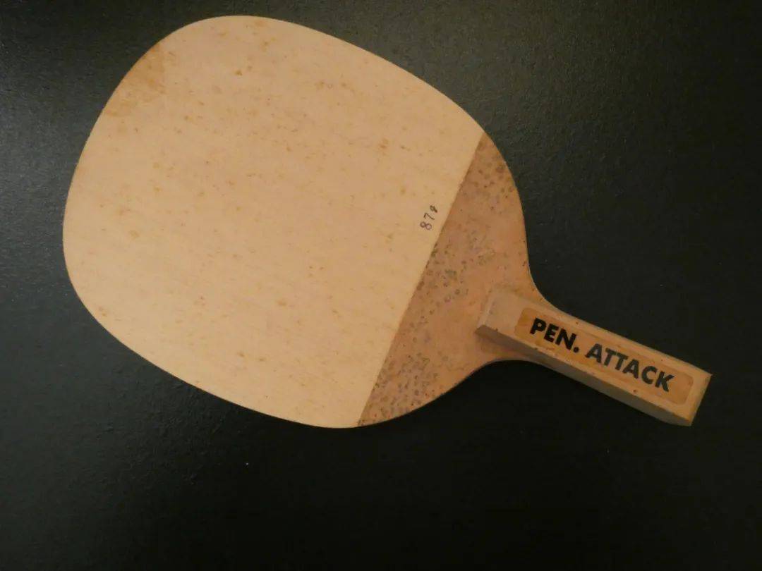 Pen Attack是檜木大芯球板,這種結(jié)構(gòu)的球板非常罕見,而且面材的日檜非常之厚,打起來檜味十足。如果現(xiàn)在要復(fù)刻這支球板,相信會價格不菲。↓↓↓